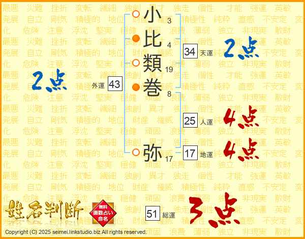 小(3画)比(4画)類(19画)巻(8画) 弥(17画)