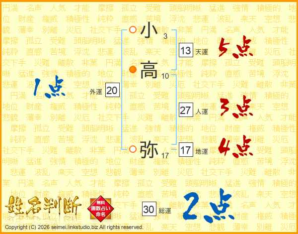 小高弥さんの総運は30画の2点!