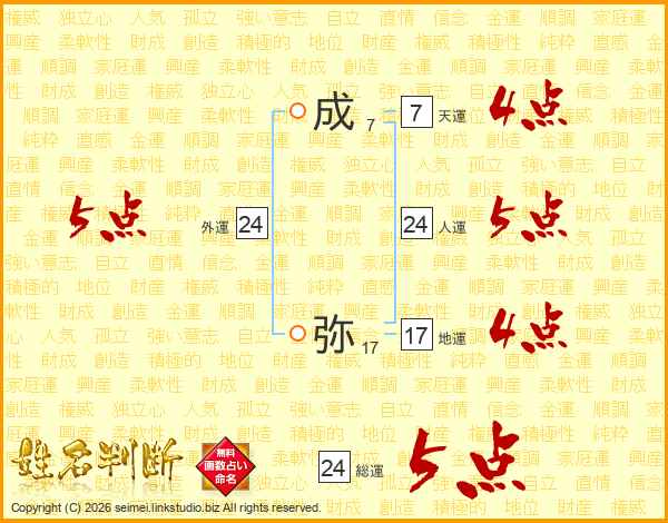 成弥さんの総運は24画の5点!