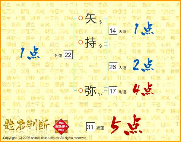 矢持弥さんの総運は31画の5点!