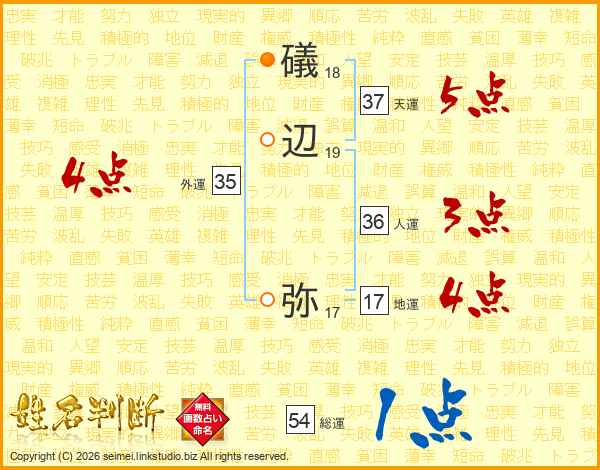 礒辺弥さんの総運は54画の1点!