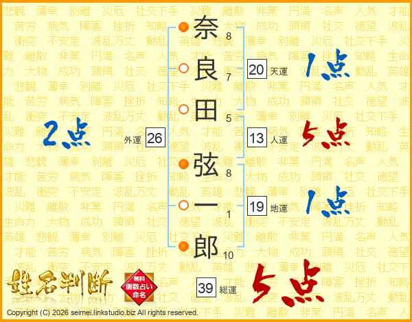奈良田弦一郎さんの総運は39画の5点!