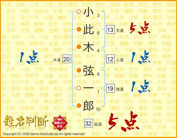 小此木弦一郎さんの天運は13画の5点!