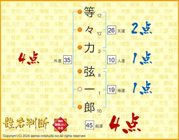 等々力弦一郎さんの総運は45画の4点!