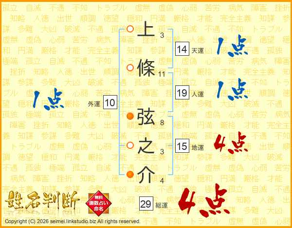 上條弦之介さんの総運は29画の4点!