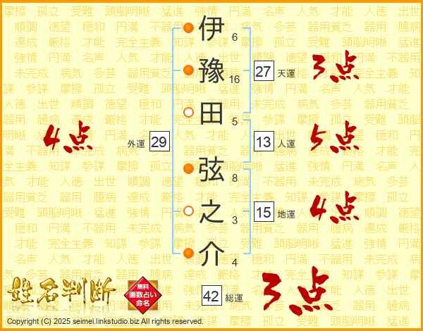 伊豫田弦之介さんの天運は27画の3点!