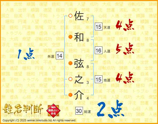 佐(7画)和(8画) 弦(8画)之(3画)介(4画)