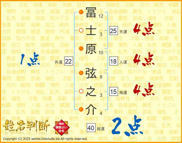 冨士原弦之介さんの天運は25画の4点!