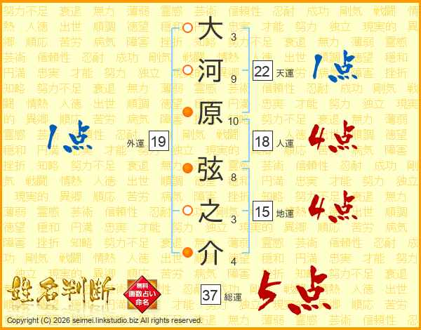 大河原弦之介さんの総運は37画の5点!