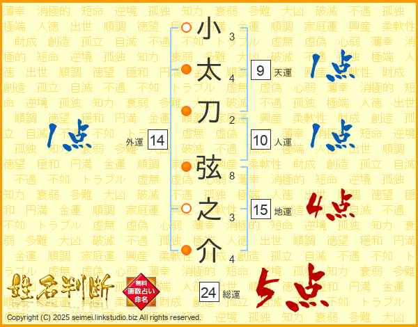 小(3画)太(4画)刀(2画) 弦(8画)之(3画)介(4画)
