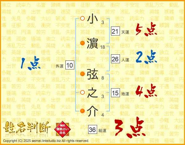 小濵弦之介さんの天運は21画の5点!