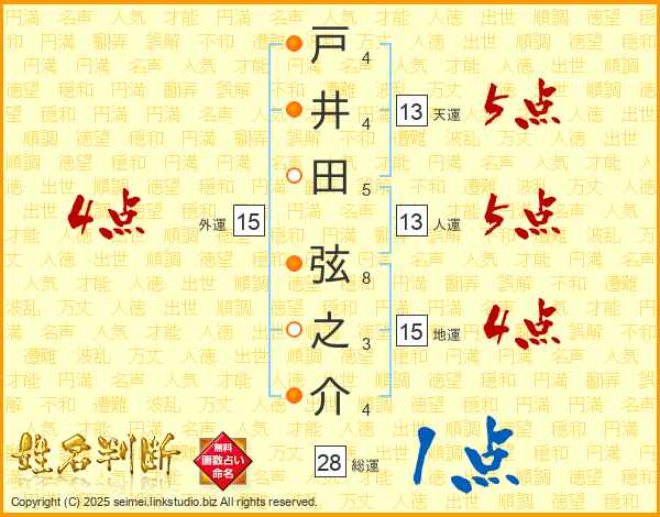 戸(4画)井(4画)田(5画) 弦(8画)之(3画)介(4画)