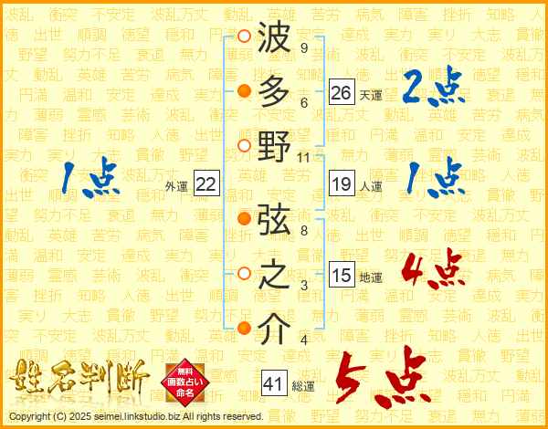 波(9画)多(6画)野(11画) 弦(8画)之(3画)介(4画)