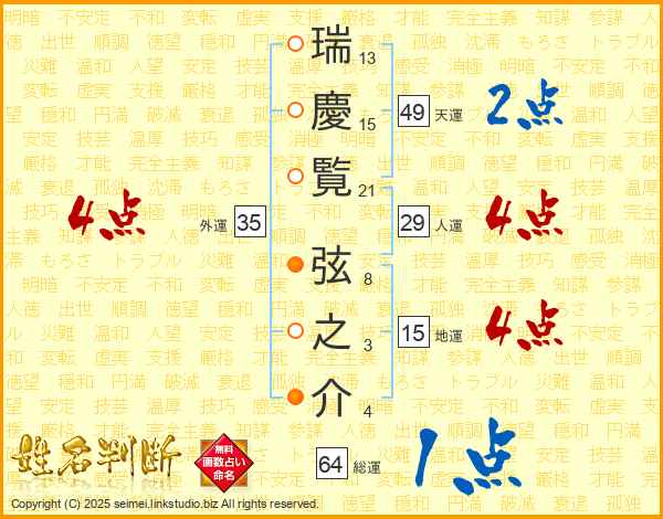瑞慶覧弦之介さんの総運は64画の1点!
