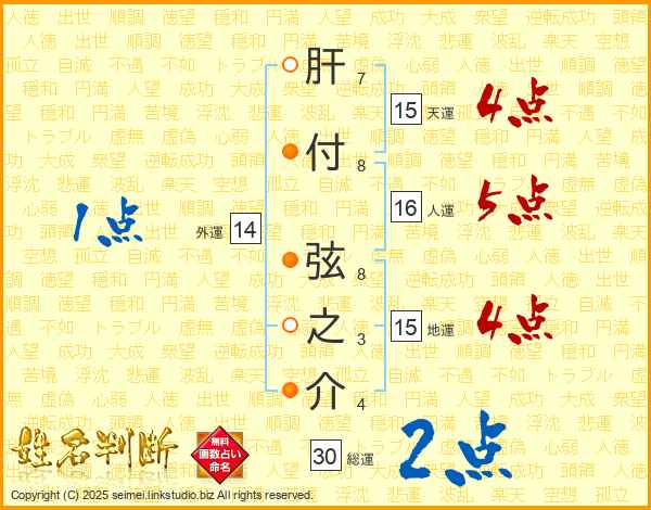 肝(7画)付(8画) 弦(8画)之(3画)介(4画)