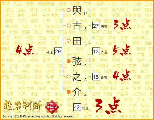 與(17画)古(5画)田(5画) 弦(8画)之(3画)介(4画)