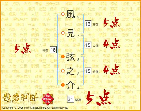 風(9画)見(7画) 弦(8画)之(3画)介(4画)
