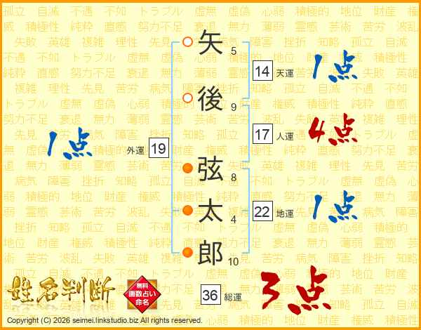 矢後弦太郎さんの総運は36画の3点!