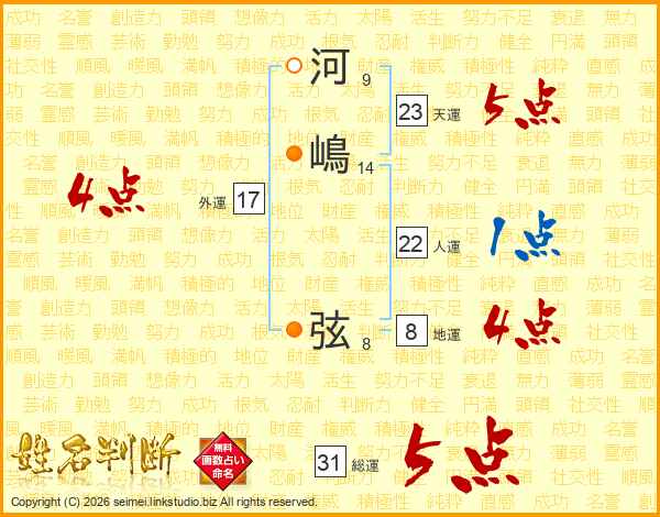 河嶋弦さんの総運は31画の5点!