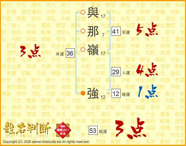 與那嶺強さんの天運は41画の5点!