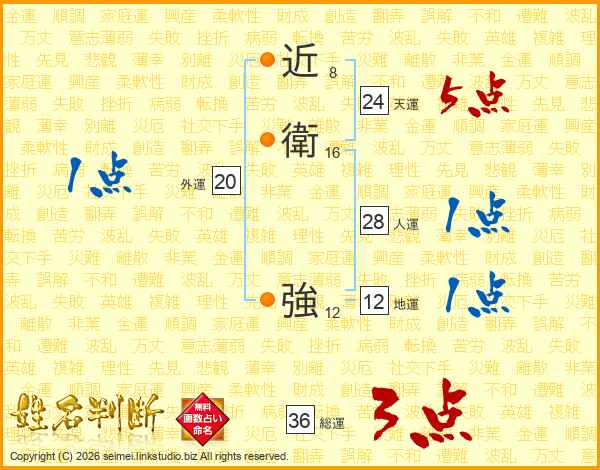 近衛強さんの総運は36画の3点!