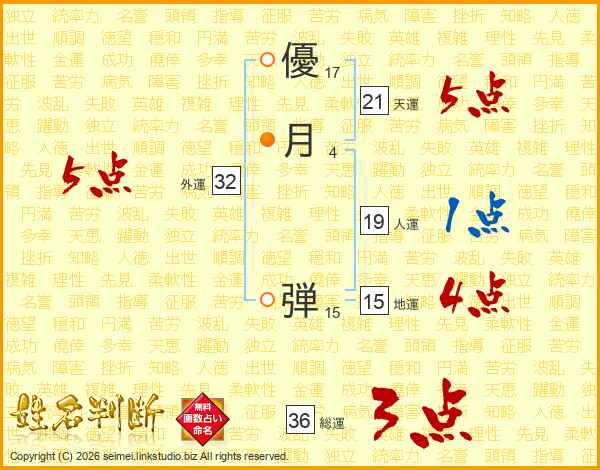優月弾さんの外運は32画の5点!