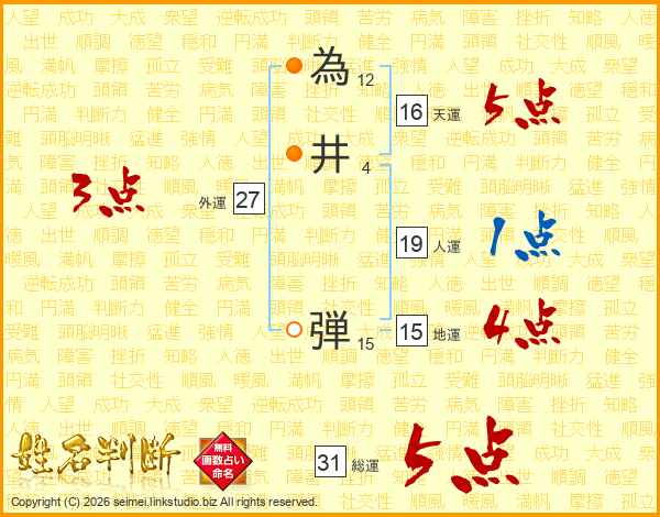 為井弾さんの総運は31画の5点!