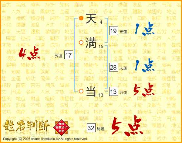 天満当さんの総運は32画の5点!