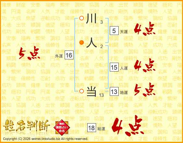 川人当さんの総運は18画の4点!