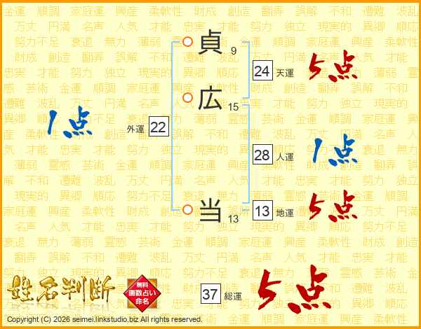 貞広当さんの総運は37画の5点!