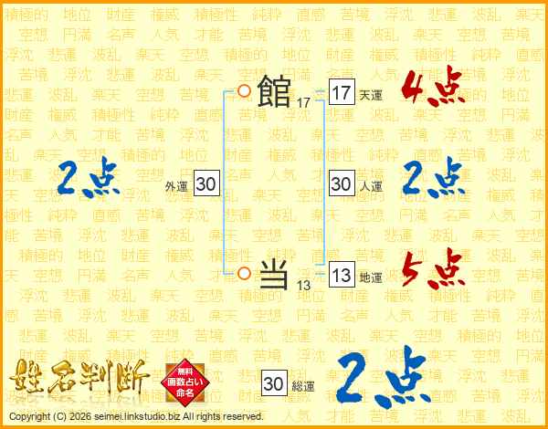 館当さんの人運は30画の2点!