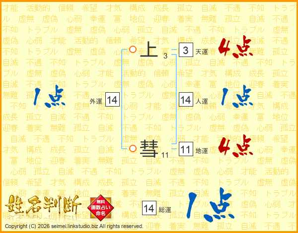 上彗さんの総運は14画の1点!