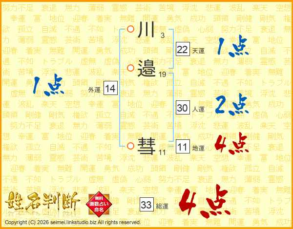 川邉彗さんの総運は33画の4点!