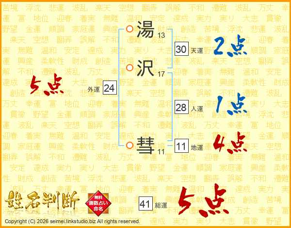 湯沢彗さんの総運は41画の5点!