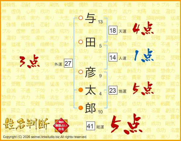 与田彦太郎さんの総運は41画の5点!