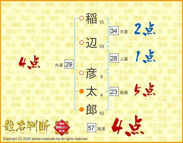 稲辺彦太郎さんの総運は57画の4点!
