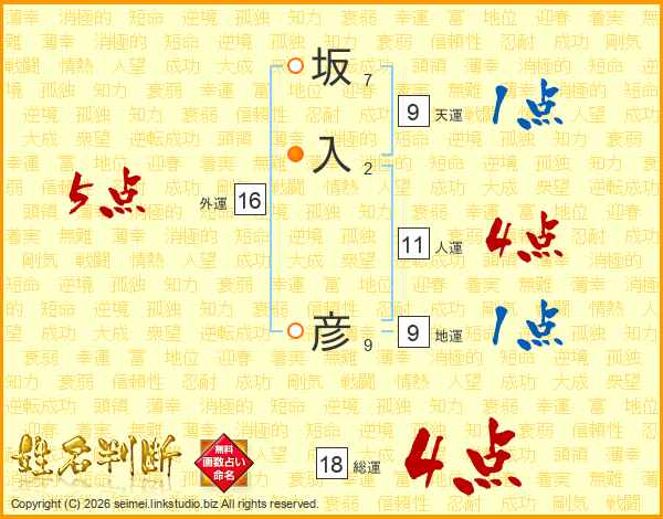 坂入彦さんの総運は18画の4点!