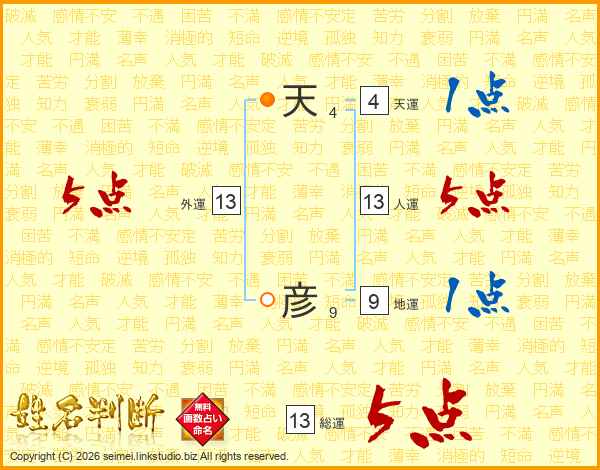 天彦さんの総運は13画の5点!
