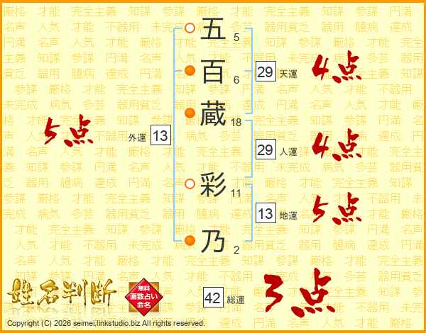 五百蔵彩乃さんの外運は13画の5点!