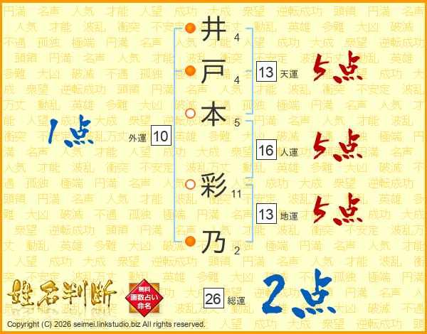 井戸本彩乃さんの天運は13画の5点!