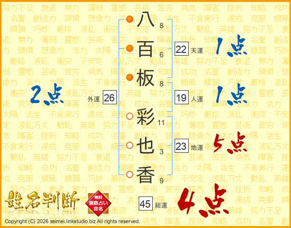 八百板彩也香さんの総運は45画の4点!