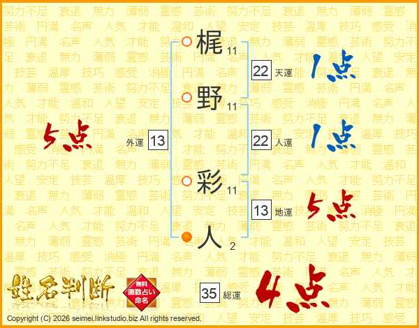 梶野彩人さんの総運は35画の4点!