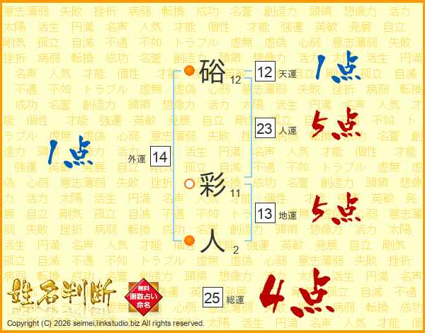 硲彩人さんの総運は25画の4点!