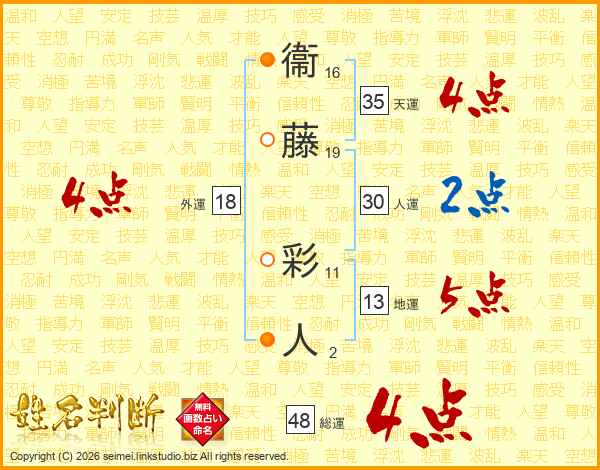 衞藤彩人さんの総運は48画の4点!
