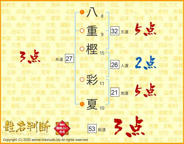八重樫彩夏さんの総運は53画の3点!
