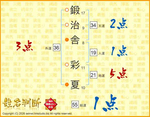 鍛治舎彩夏さんの総運は55画の1点!