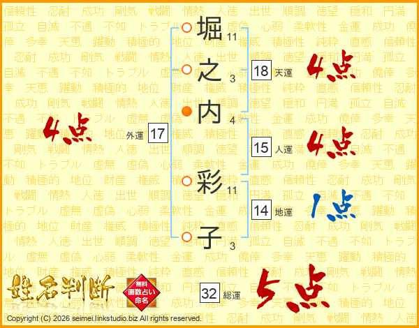 堀之内彩子さんの総運は32画の5点!