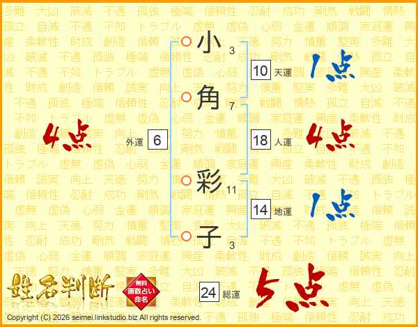 小角彩子さんの総運は24画の5点!