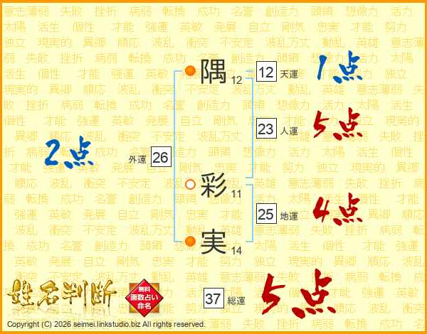 隅彩実さんの総運は37画の5点!