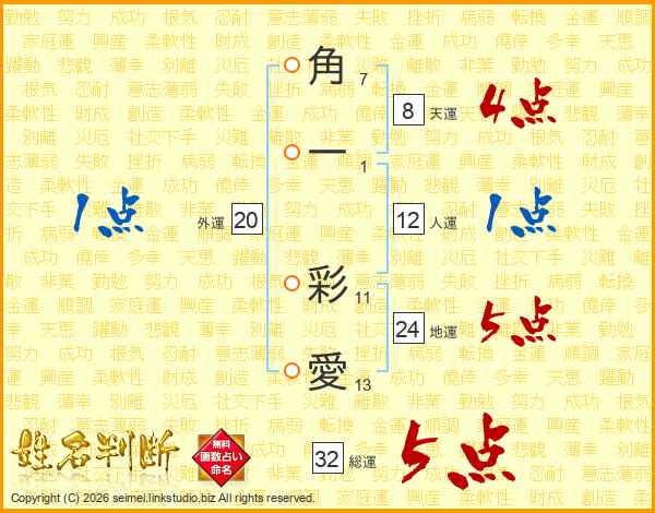 角一彩愛さんの総運は32画の5点!